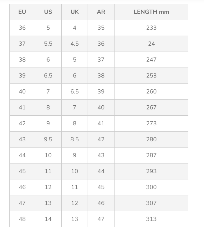 - Cuello calcetín elástico , máximo ajuste en empeine y zona talón.